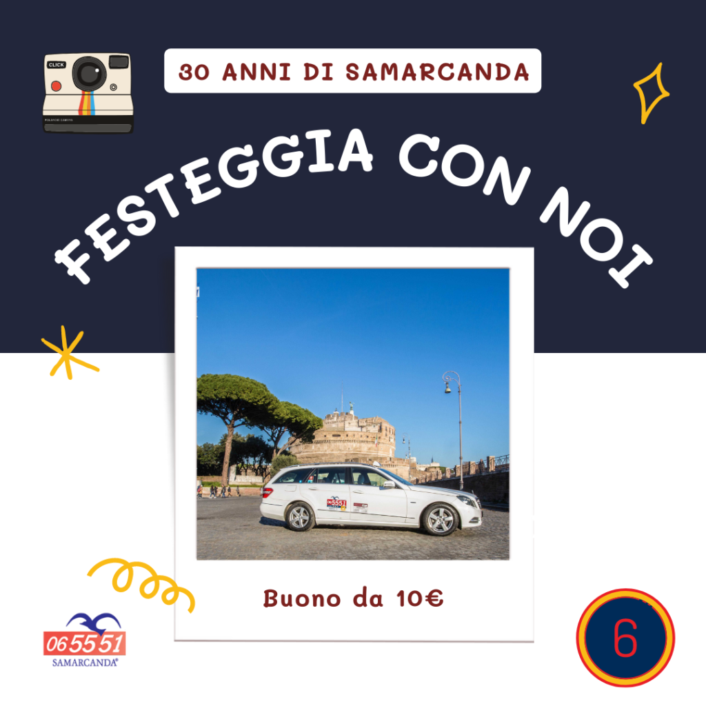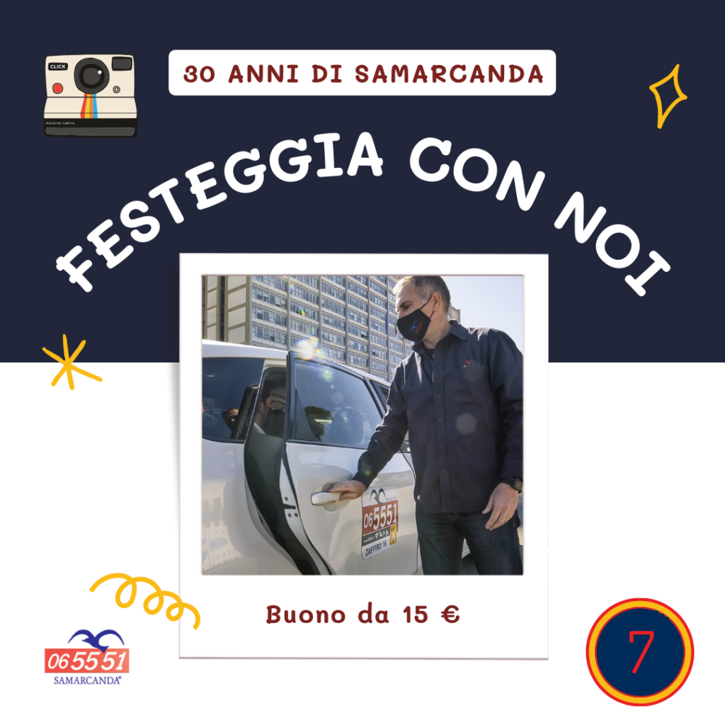 Dal 2 all’8 Maggio 2022 scatta una foto di un taxi Samarcanda: a bordo taxi, un selfie con il tassista, una foto al posteggio o un video…dai sfogo alla tua creatività. Postala sul feed del tuo social network preferito e tagga Samarcanda inserendo l’hashtag #Samarcanda30 e #TaxiSamarcanda. Puoi utilizzare Facebook – Instagram– Twitter.