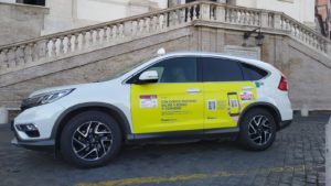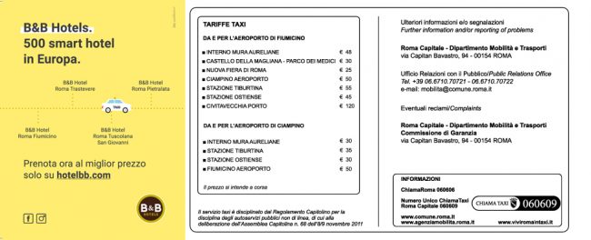 - Kit distribuiti a bordo taxi dedicati ai turisti in arrivo a Roma