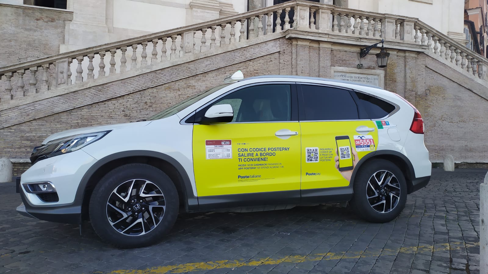 La promozione sui taxi è uno strumento pubblicitario di grande efficacia in termini di visibilità e di percezione da parte del pubblico. Le immagini viste sui taxi rimangono infatti impresse con facilità, spesso in maniera del tutto inconscia. E’ un tipo di pubblicità che consente di comunicare in modo immediato e con particolare appeal in tutta la città, sia nelle zone del centro che in quelle periferiche, oltre che gli snodi di grande afflusso di persone come le stazioni ferroviarie e gli aeroporti.