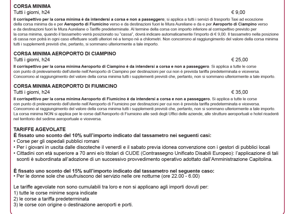 Per ulteriori informazioni sulle tariffe in vigore, rimandiamo al sito Roma Mobilità.